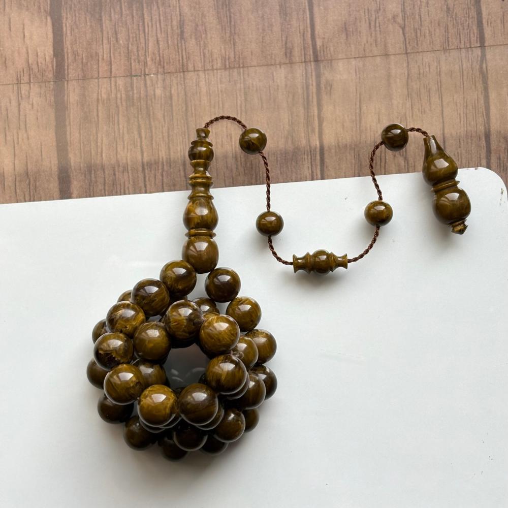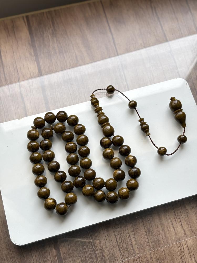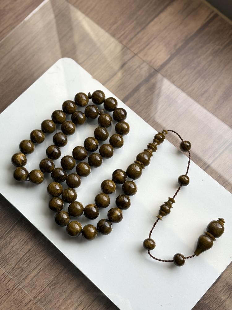 يتميز مسباح الفاتوران بلون مميز جيشي معرق و بعمليته و بوزن راهي و بعدد خرز 45 خرزه و حجم خرز 12 ملي و بتمليكه فاخره